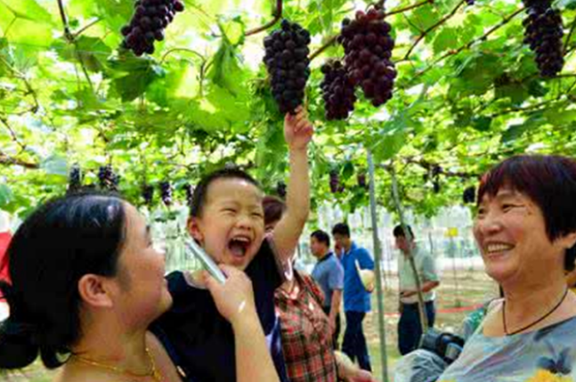 (八)果蔬采摘体验园:园区种植有核桃、油桃、樱桃、梨、葡萄、杏、石榴、柿子等种类果树的优良品种,基本上实现春华秋实。所有果园严格按照省级无公害农产品(水果部分)生产:标准化管理,施用有机肥、果园种草覆草、果实套袋、林下养殖等生态措施来管理果园,尤其是林下养殖,通过果园种草养鸡、鸡吃果园害虫、鸡粪还田增强果园土壤肥力,果园水土得到良好保持。同时减少劳动用工,减少农药(除草剂和杀虫剂)用量,提高了果品质量,还为基地食堂提供了大量优质放养土鸡和土鸡蛋,着力打造为豫西人民的生态、绿色、安全、健康的花篮子、菜篮子、果篮子和肉篮子。