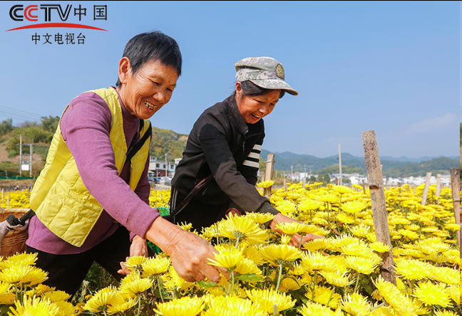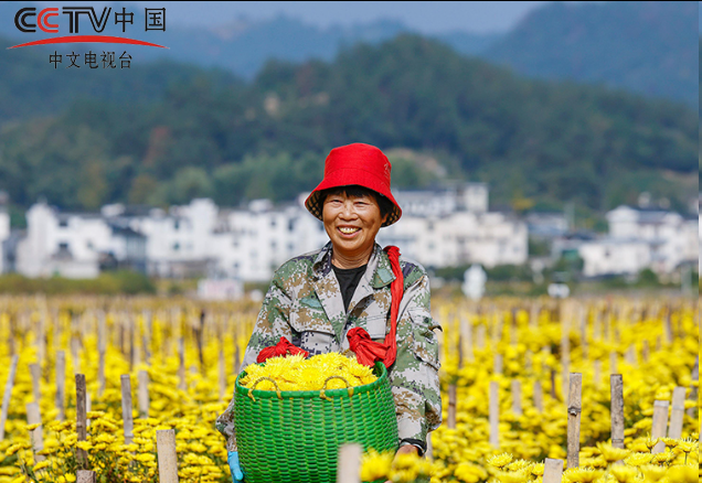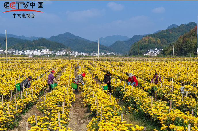 金秋时节,安徽省黄山市歙县溪头镇千亩金丝皇菊陆续进入采摘期,农民们趁着晴好天气采摘菊花,确保丰产丰收。施亚磊摄(人民图片网)